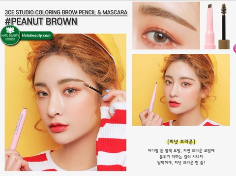 3ce Studio Coloring Brow Pencil Mascara Peanut Brown Makeup